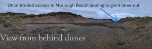 Here is a dramactic example of this at the National Trust owned beach at Murlough in County Down. Here a failure to manage beach entrances and the front edge of the dunes is leading to massive losses compared to nearby Tyrella beach that has higher visitor numbers.