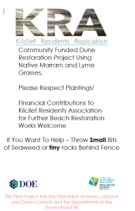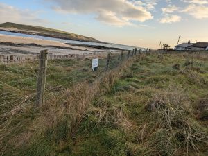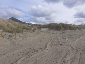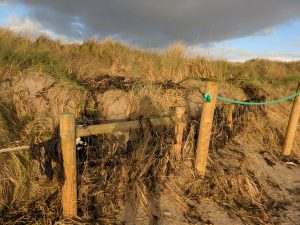 The important first step in any dunes restoration is protecting the rear area of the dunes and directing leisure users to controlled beach entrances. A standard non rust sheep fence with a non-rust tensioning wire along the top is recommended and periodic heavy stay posts.