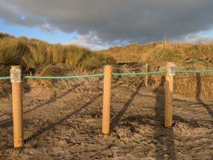 MINIMALIST. A cheap rope fence using lots of small notices to get the public on board. It is a good idea to ask the public to throw bits of seaweed over the rope or behind the fence as this does help trap sand and gives nutrient to new growth.