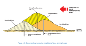 However, removing, maintaining or renovating the ‘front edge fencing’ or particularly the ‘rear fencing’ (see top) should be built into the maintenance regime of the land owner or beach manager organisation.